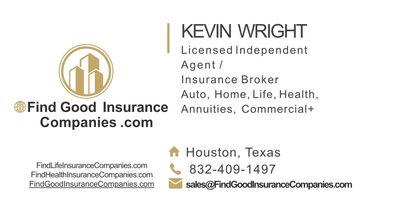 Sign up BELOW if interested to apply to Become an Agent or Purchase Insurance/Annuities Get Quote. Independent life insurance agent Kevin Wright originally was only a PHP Agent (NON CAPTIVE), but decided to expand, become more powerful in the industry to help clients, and now has one of the most top raked websites in the Insurance Industry. Now as an Insurance Broker, Kevin Wright sells Home, Business, Auto, Health life insurance, annuities and more.. Contact Me 832-409-1497 or sales@findgoodinsurancecompanies.com